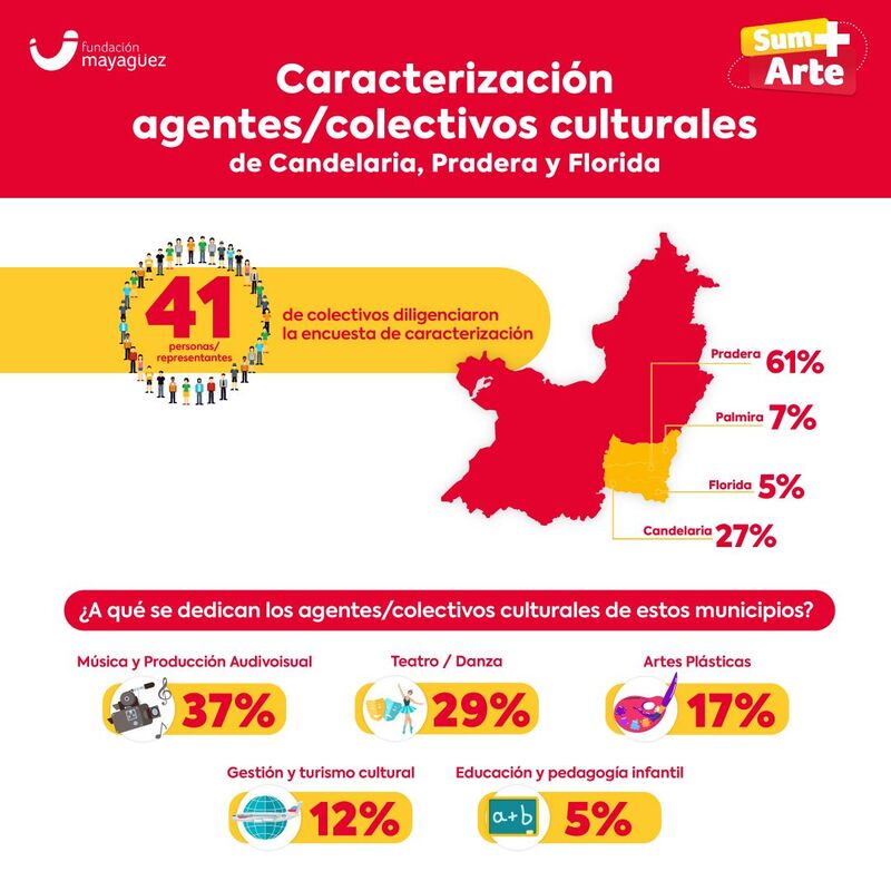 En 2022, trabajamos junto con la Fundación Madame Blue para realizar una caracterización de los agentes culturales de Candelaria, Pradera y Florida con el propósito de conocer las necesidades de fortalecimiento de esta población y potenciar el mercado cultural del Valle del Cauca. Conoce los resultados: